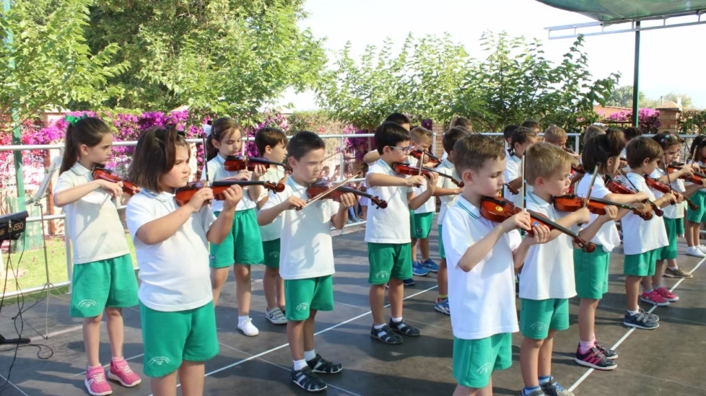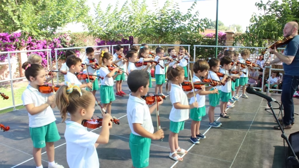 Después actúan los alumnos  en una gran fiesta: conciertos de violín, bailes… y finalmente la entrega de Diplomas a los alumnos de 5 años que se despiden del Centro.