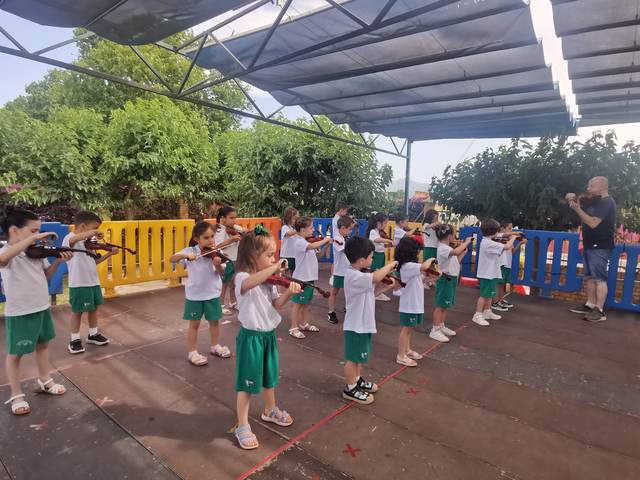 Se refuerza el inglés mediante actividades lúdicas que estimulan la curiosidad y el aprendizaje natural. En música, 3INF trabaja el ritmo y 4INF-5INF se inician en el violín con el método Suzuki.